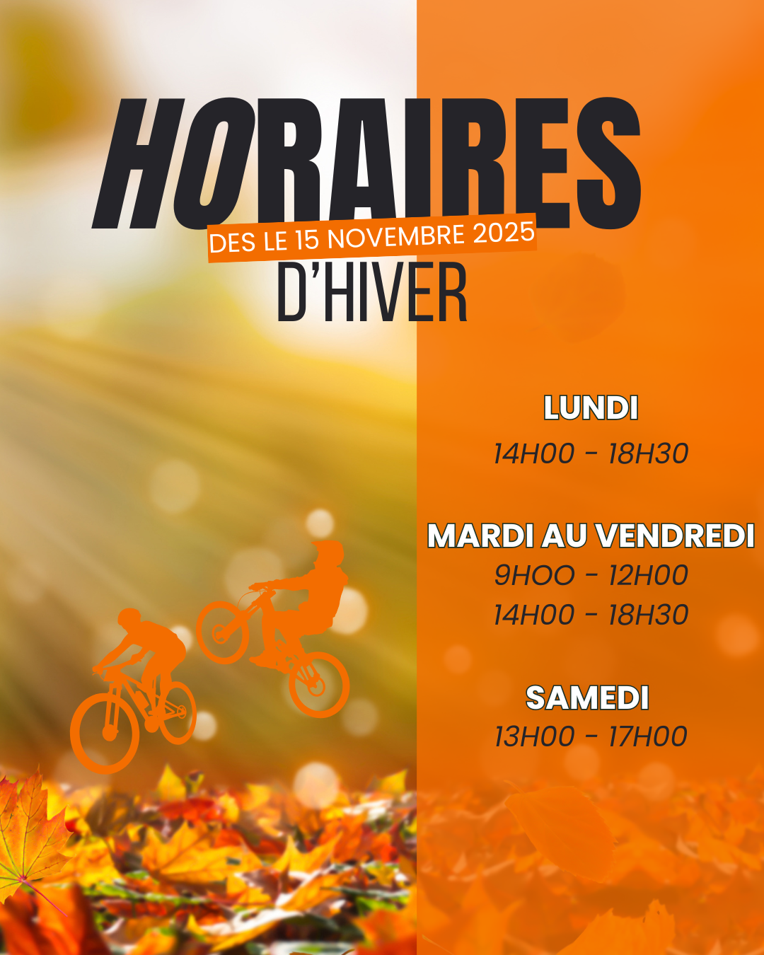 A partir de ce samedi 15 novembre 2025, nous passerons à l'horaire d'hiver.
